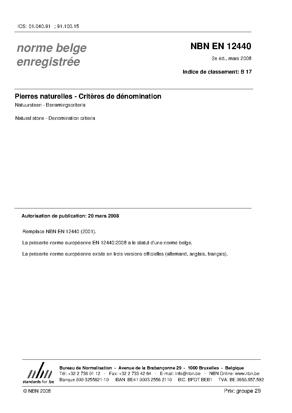 | Publisher | Bureau de Normalisation Belge (NBN) |