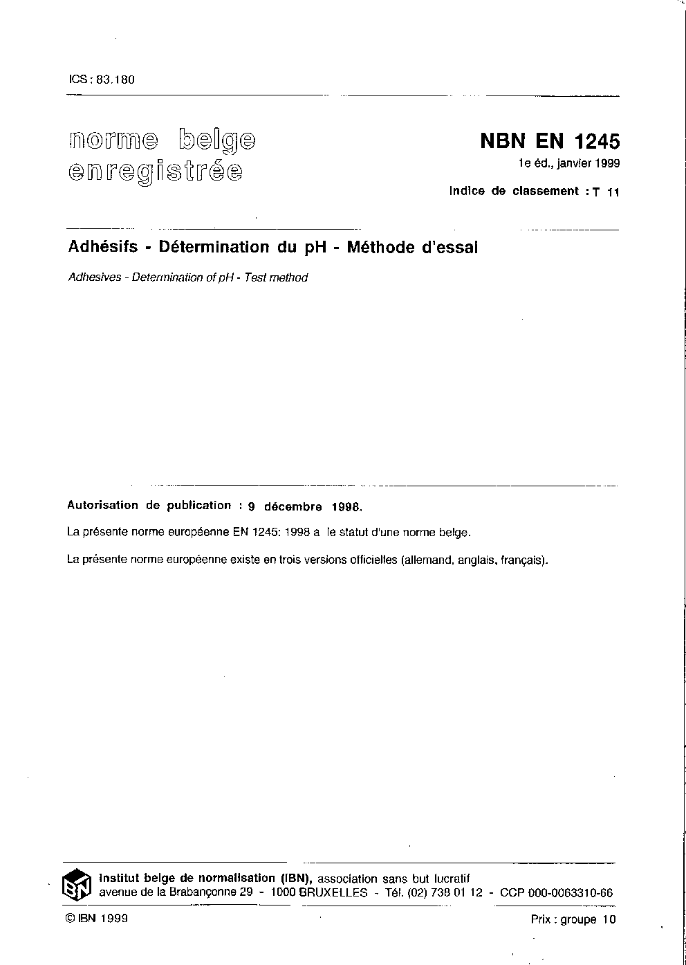 | Publisher | Bureau de Normalisation Belge (NBN) |