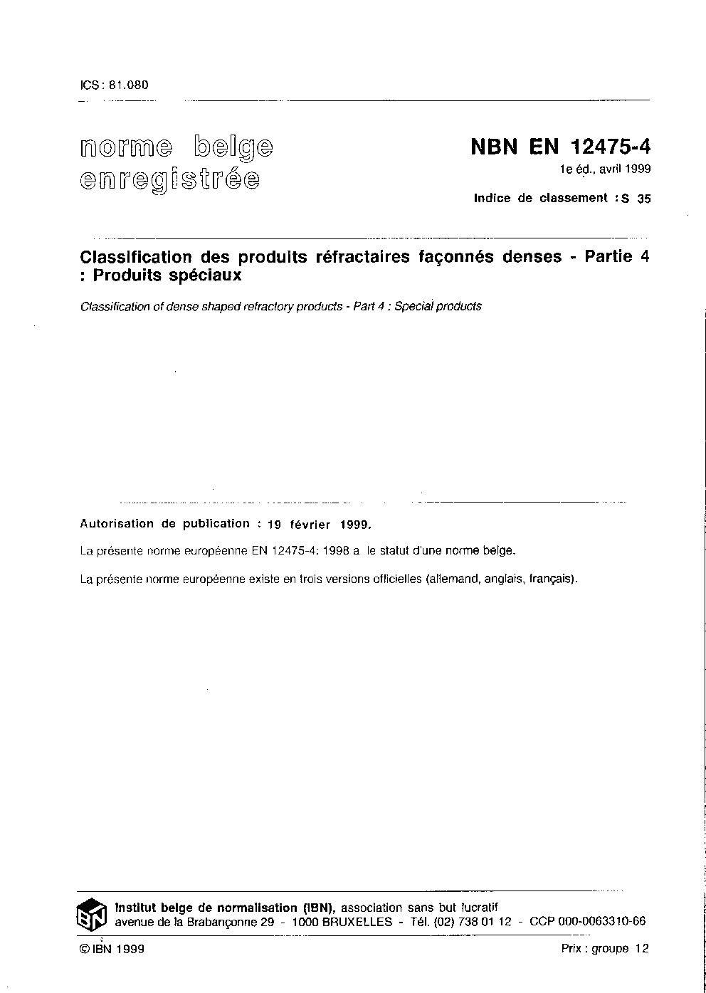 | Publisher | Bureau de Normalisation Belge (NBN) |