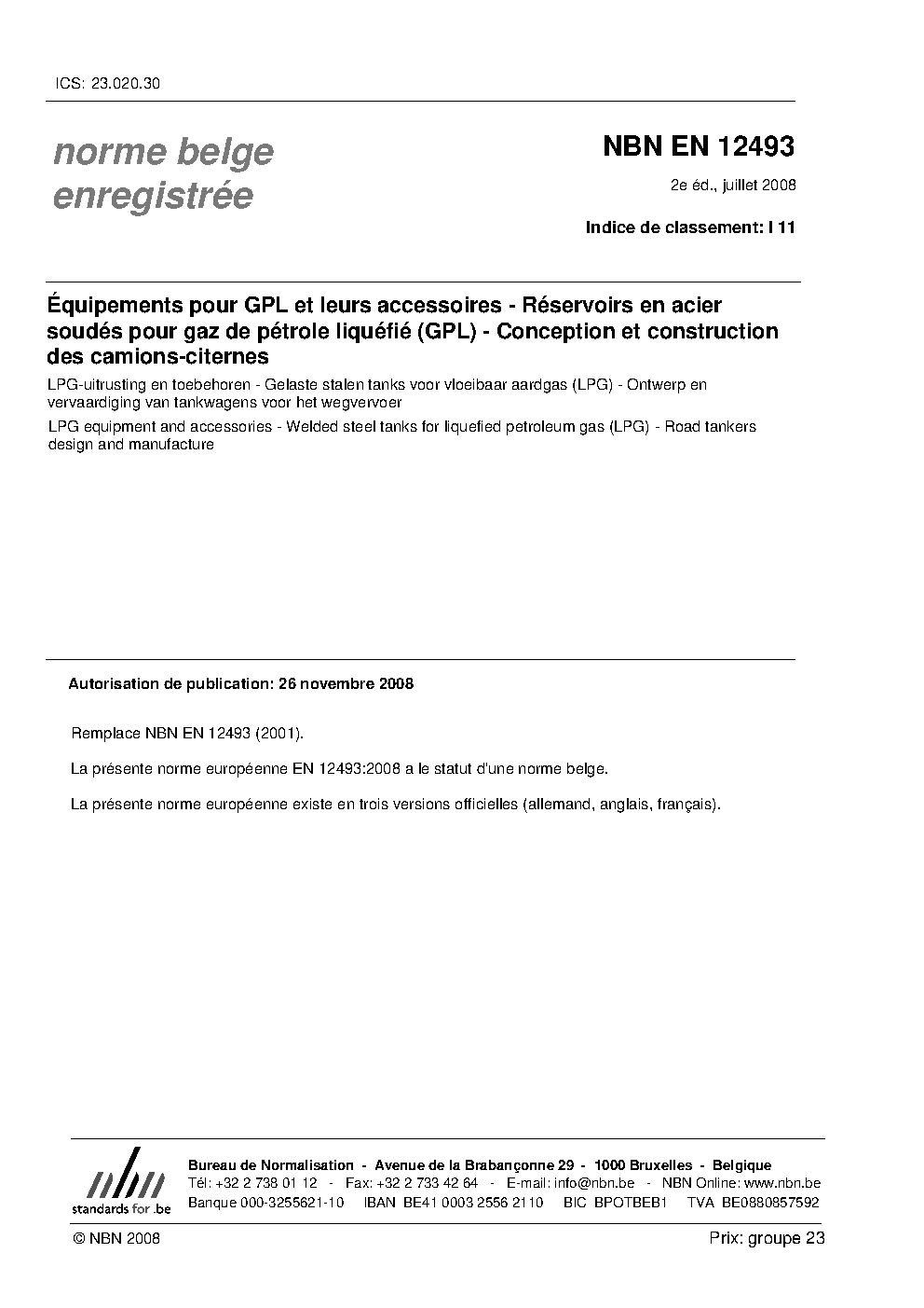 | Publisher | Bureau de Normalisation Belge (NBN) |