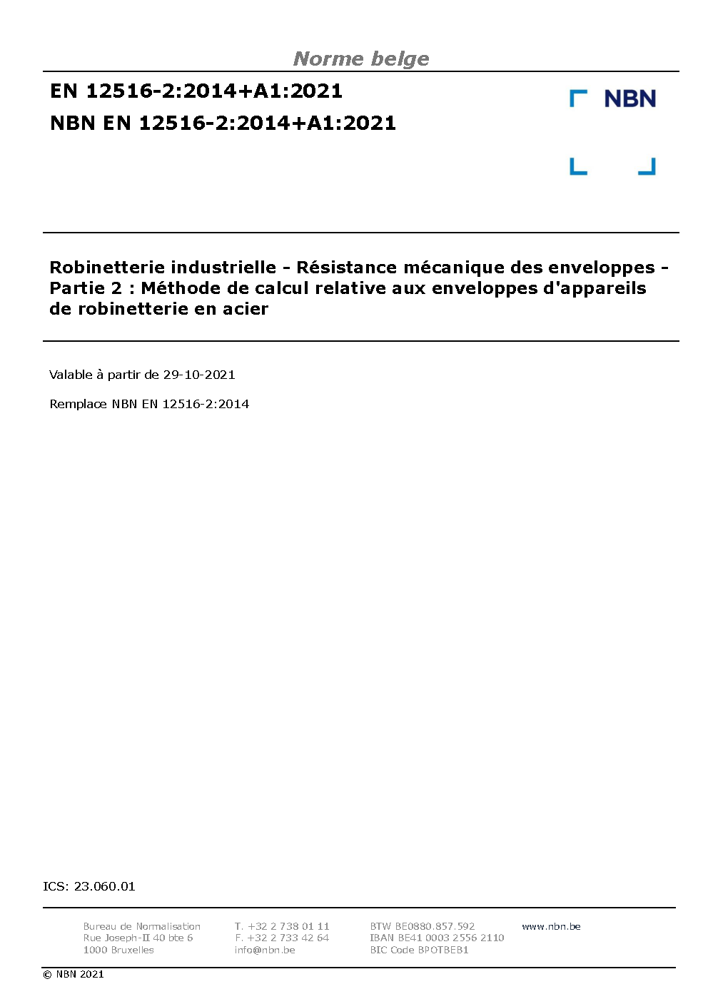 | Publisher | Bureau de Normalisation Belge (NBN) |