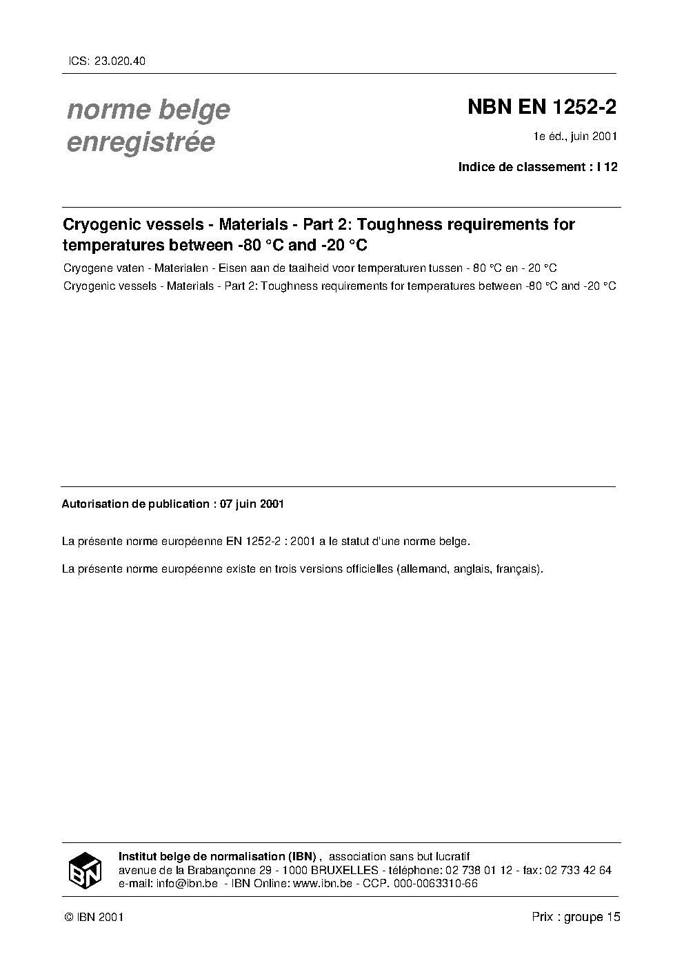 | Publisher | Bureau de Normalisation Belge (NBN) |
