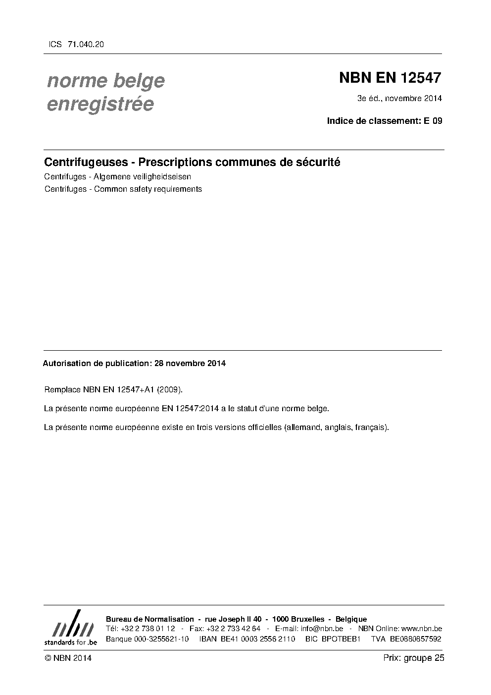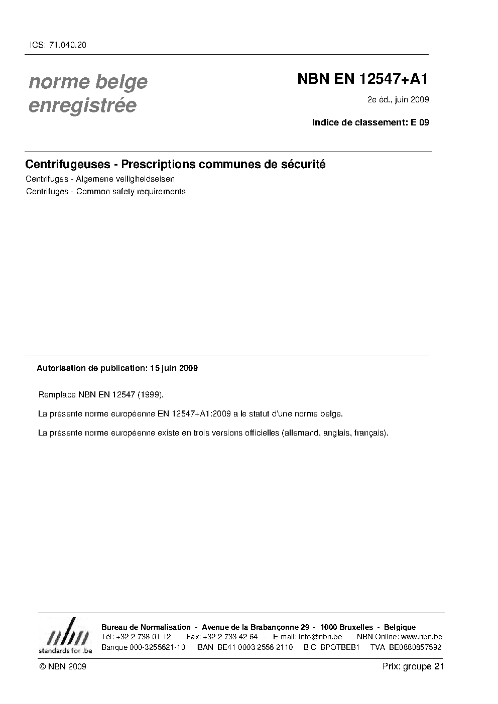 | Publisher | Bureau de Normalisation Belge (NBN) |