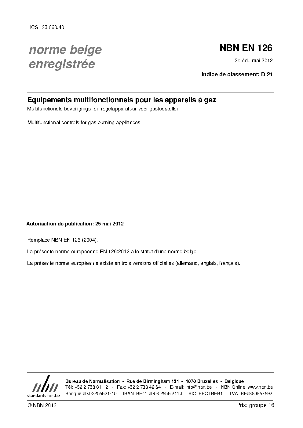 | Publisher | Bureau de Normalisation Belge (NBN) |