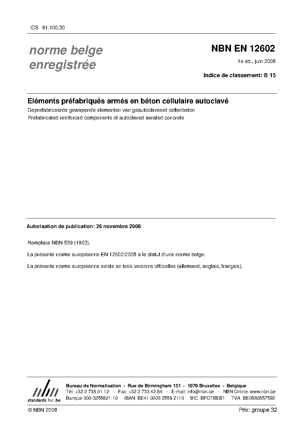 | Publisher | Bureau de Normalisation Belge (NBN) |