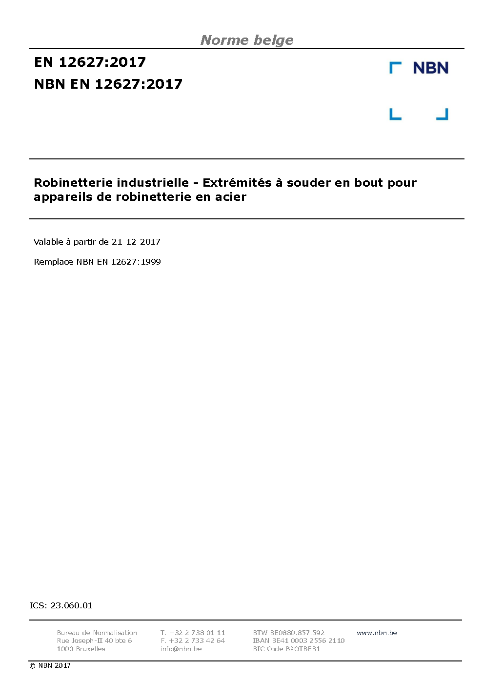 | Publisher | Bureau de Normalisation Belge (NBN) |