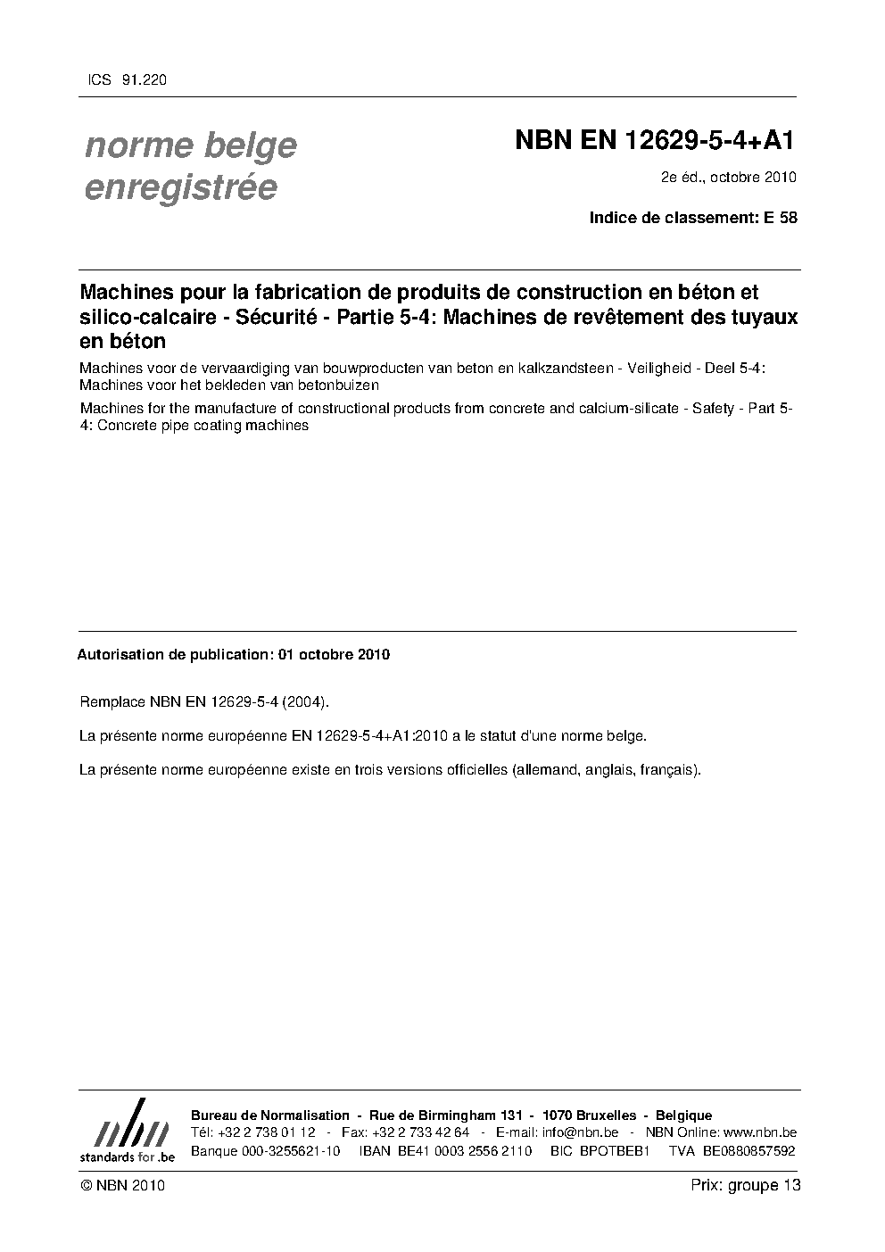 | Publisher | Bureau de Normalisation Belge (NBN) |