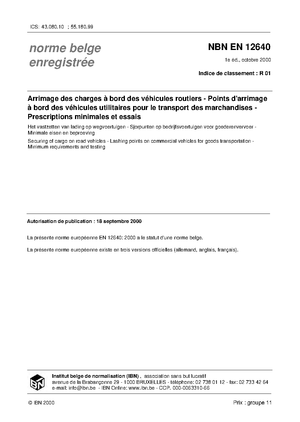 | Publisher | Bureau de Normalisation Belge (NBN) |