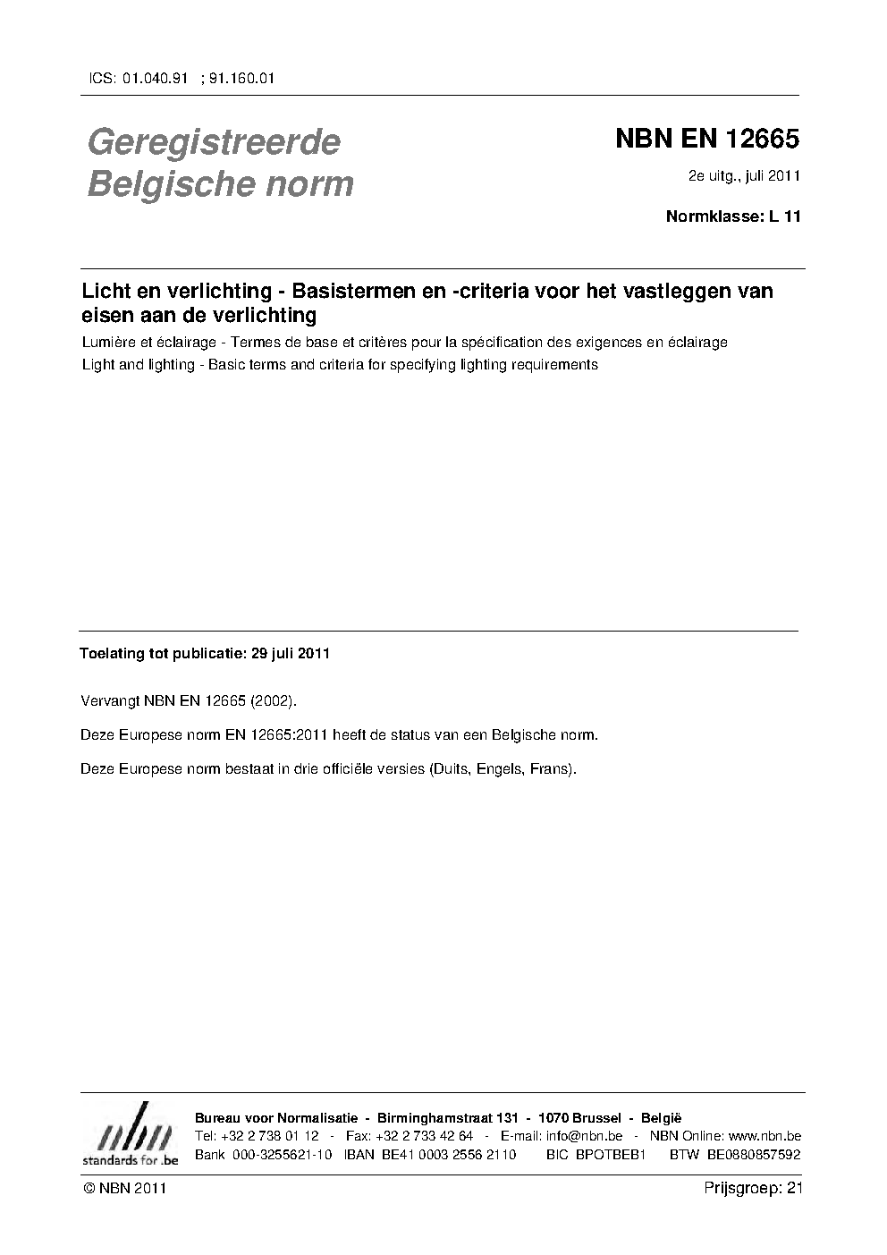 NBN EN 12665:2011