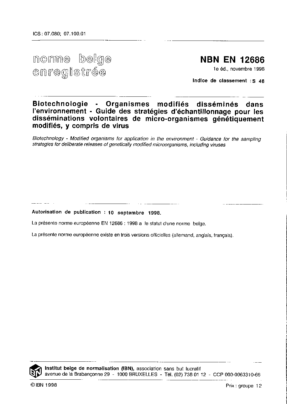 | Publisher | Bureau de Normalisation Belge (NBN) |