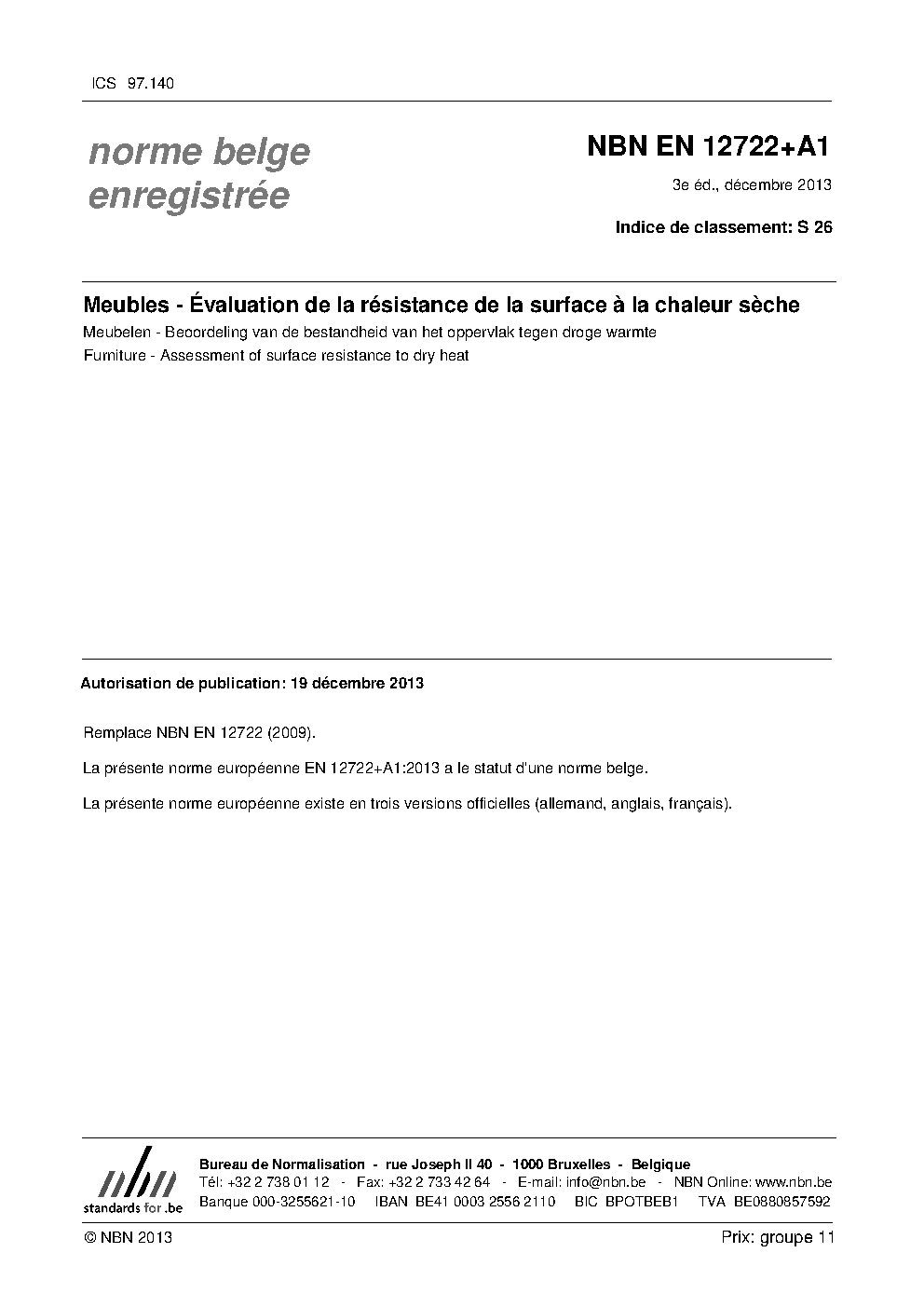| Publisher | Bureau de Normalisation Belge (NBN) |