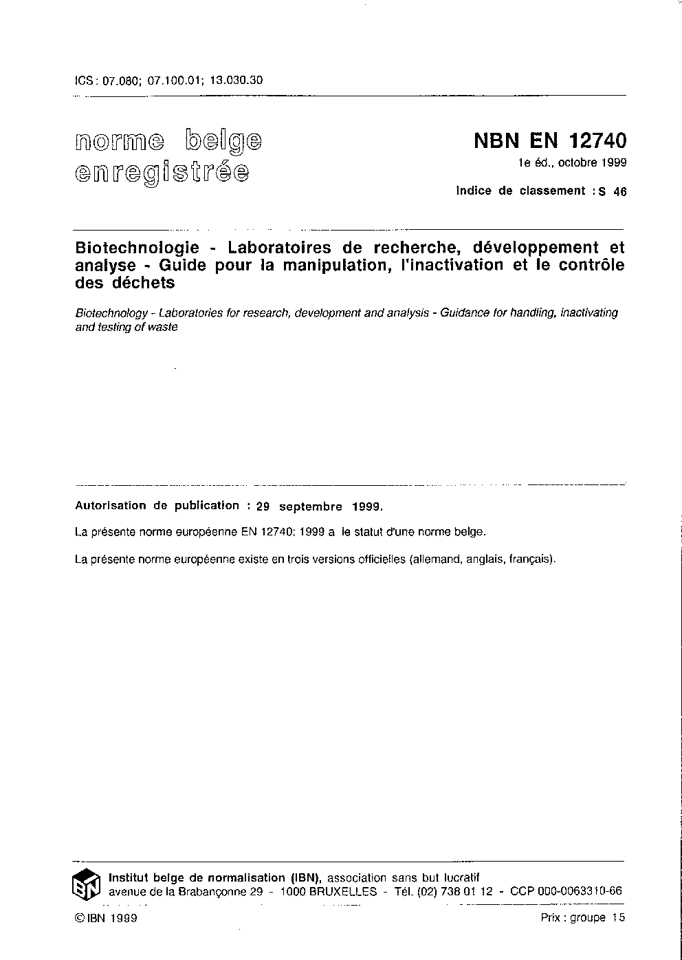 | Publisher | Bureau de Normalisation Belge (NBN) |