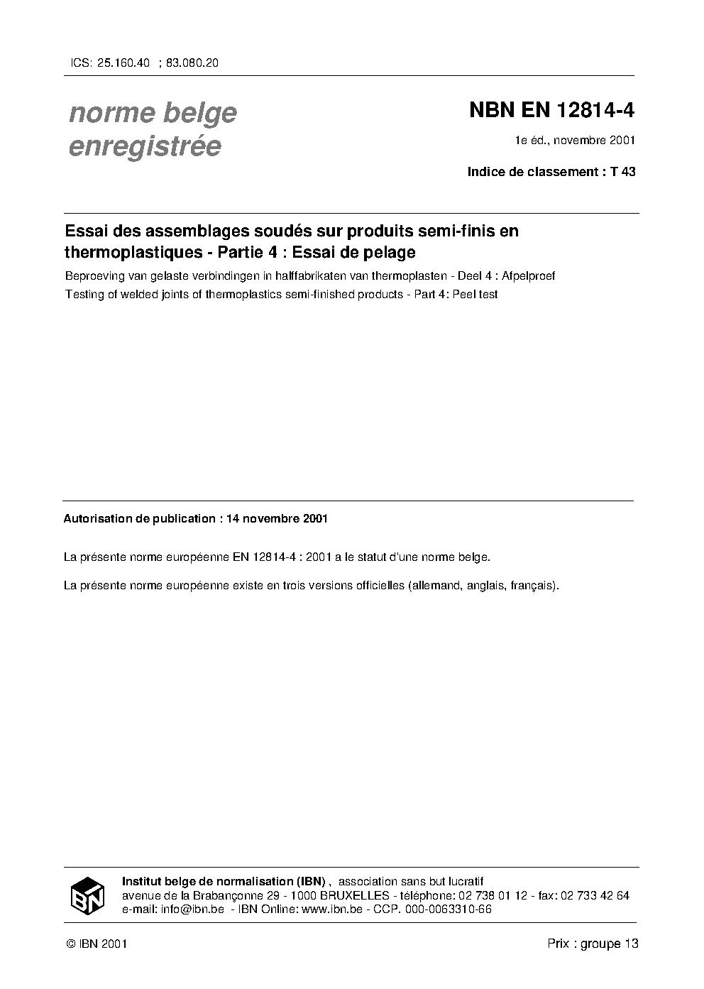 | Publisher | Bureau de Normalisation Belge (NBN) |