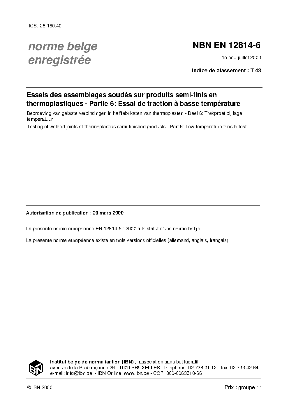 | Publisher | Bureau de Normalisation Belge (NBN) |