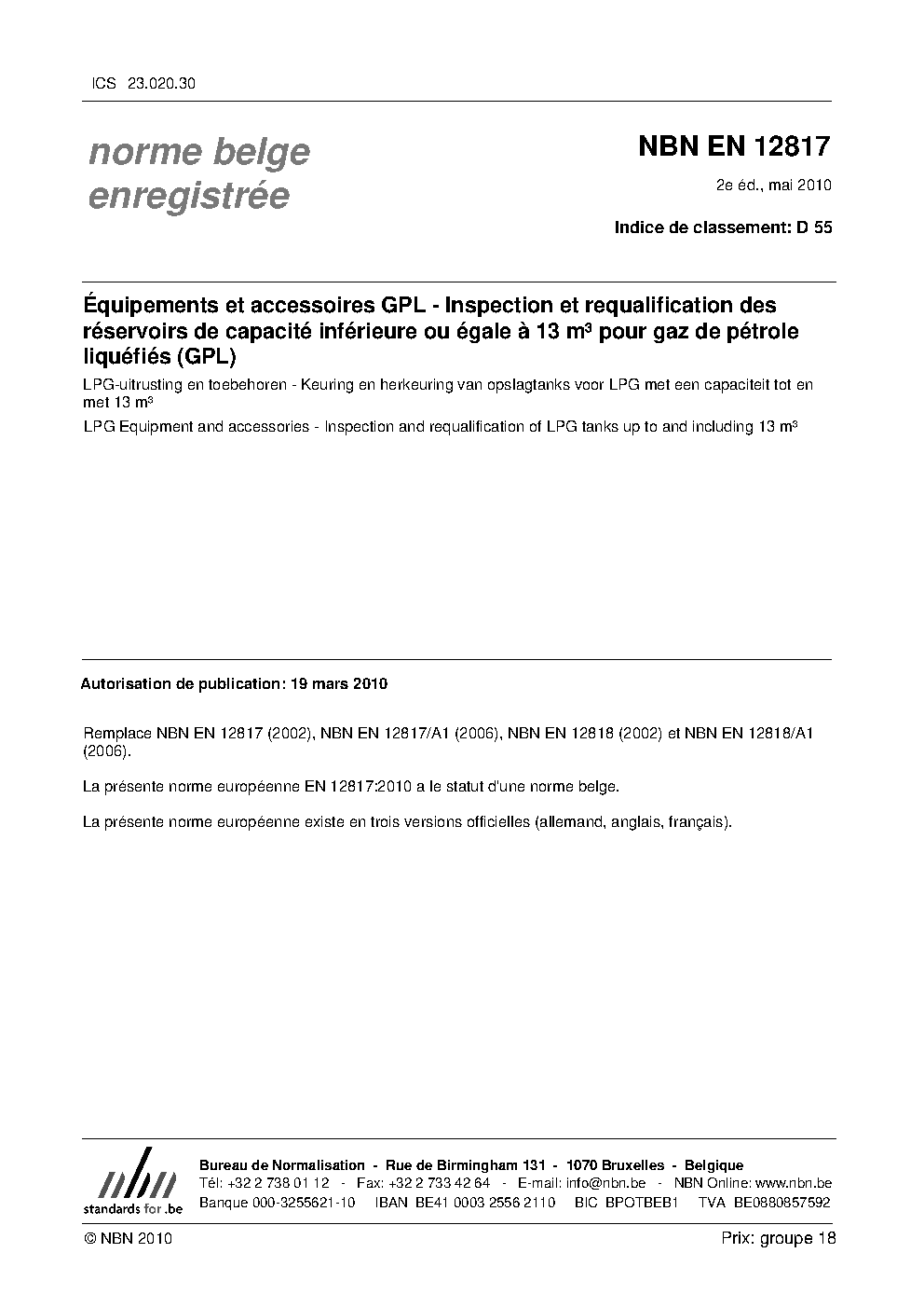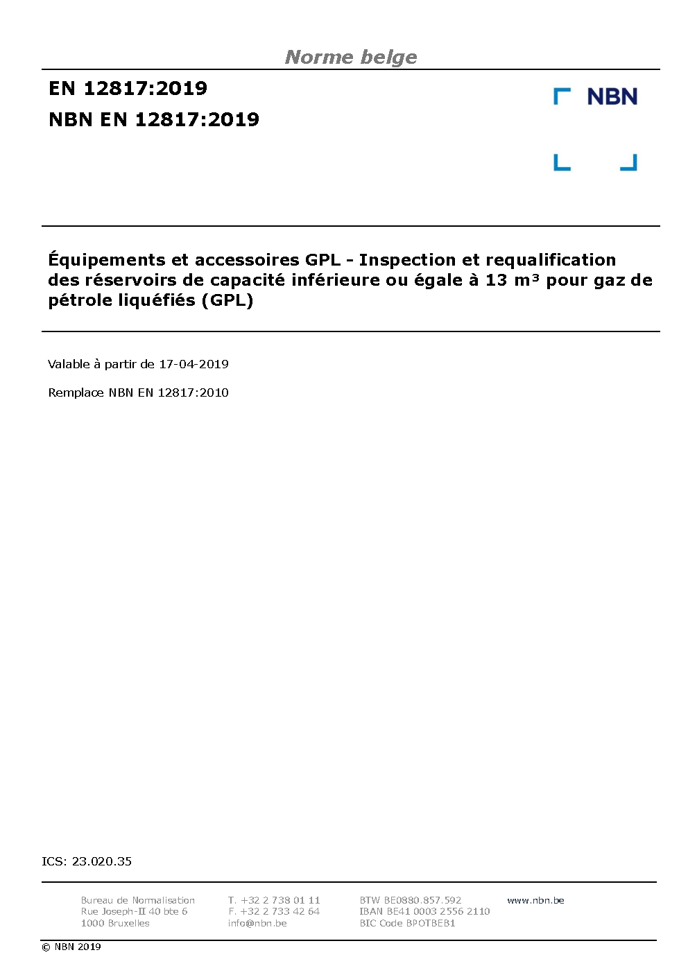 | Publisher | Bureau de Normalisation Belge (NBN) |