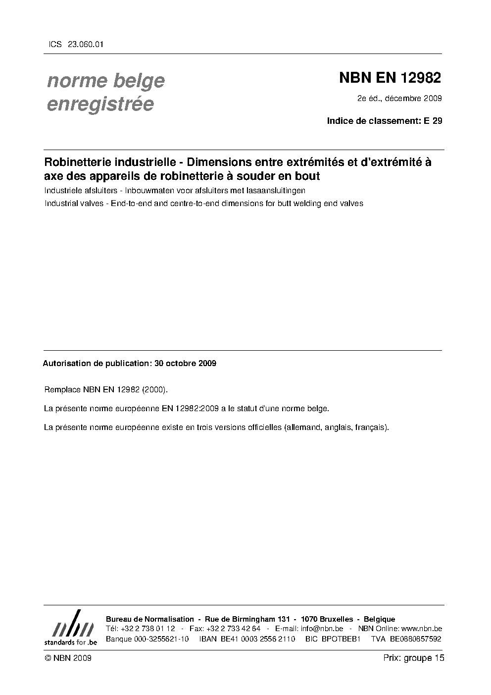| Publisher | Bureau de Normalisation Belge (NBN) |