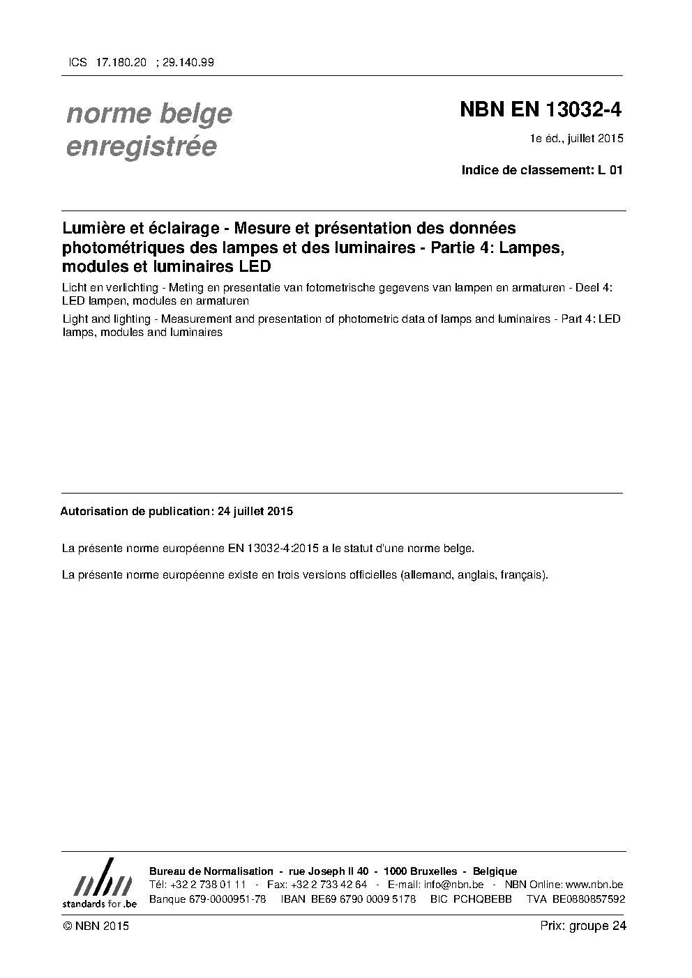 | Publisher | Bureau de Normalisation Belge (NBN) |