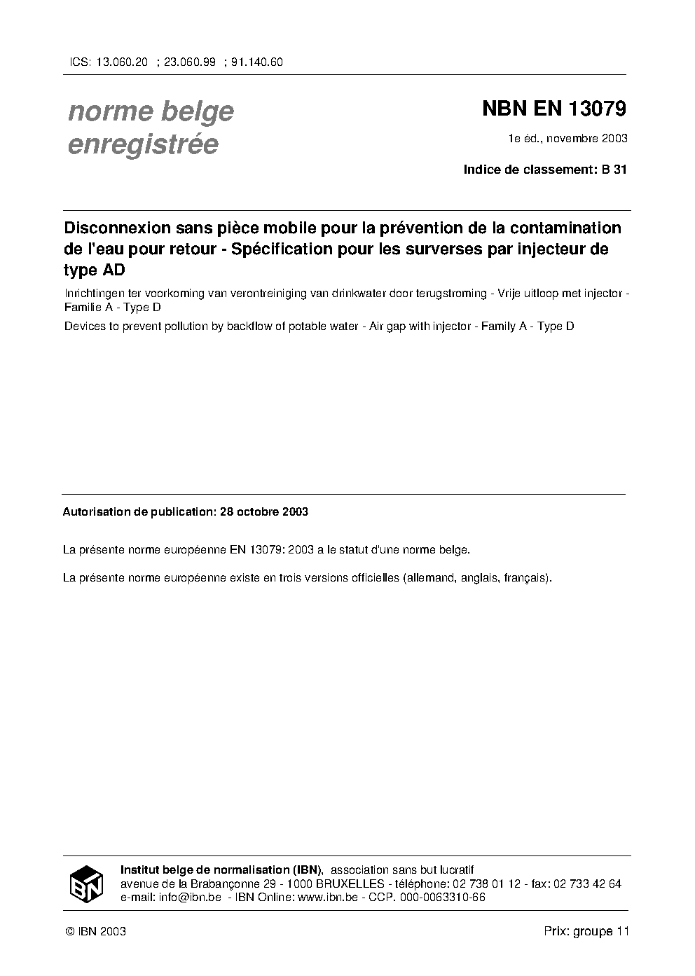 | Publisher | Bureau de Normalisation Belge (NBN) |
