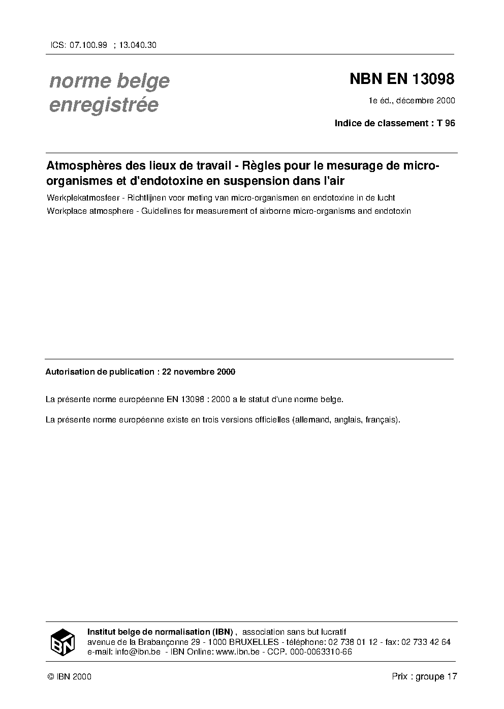 | Publisher | Bureau de Normalisation Belge (NBN) |