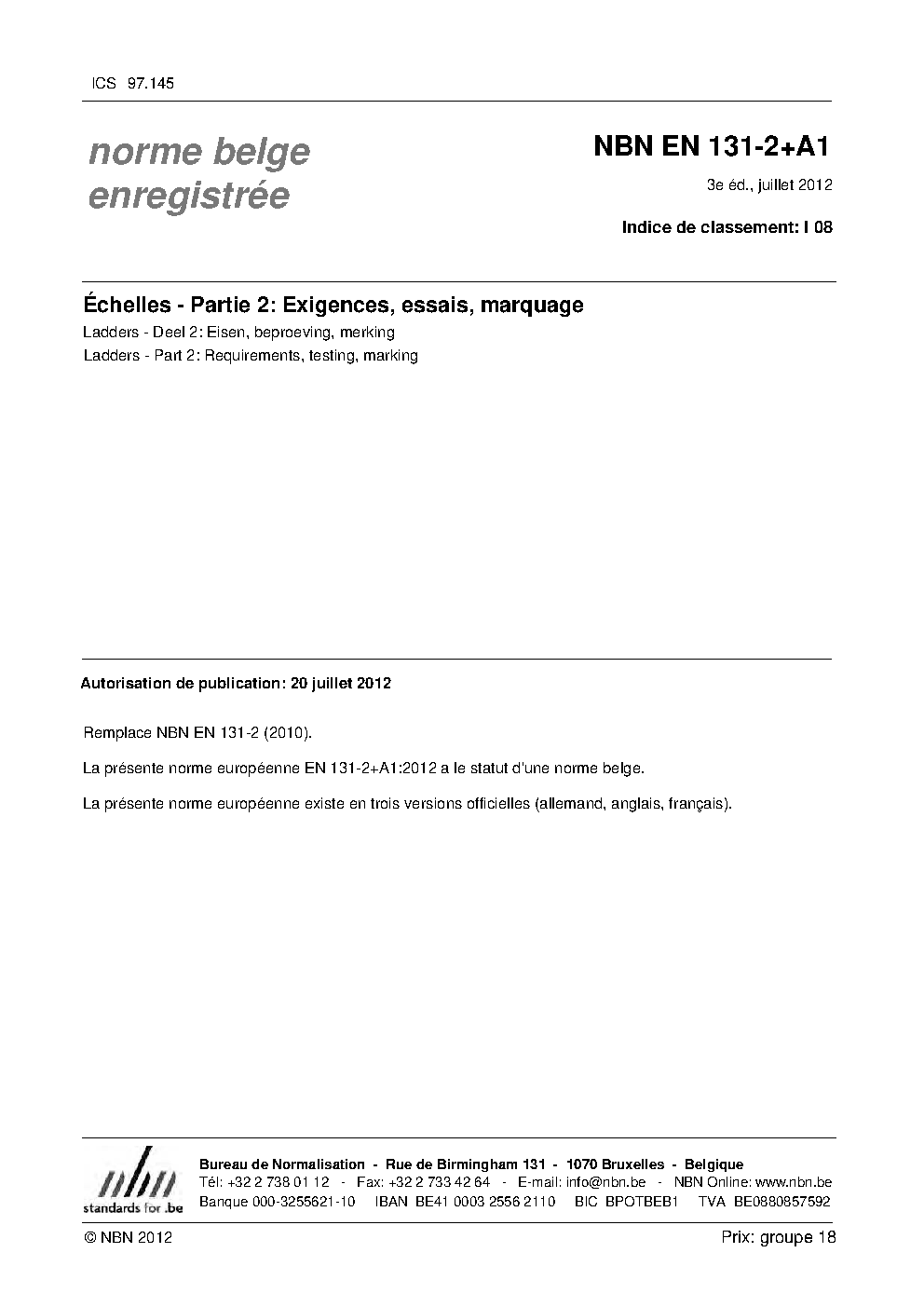 | Publisher | Bureau de Normalisation Belge (NBN) |