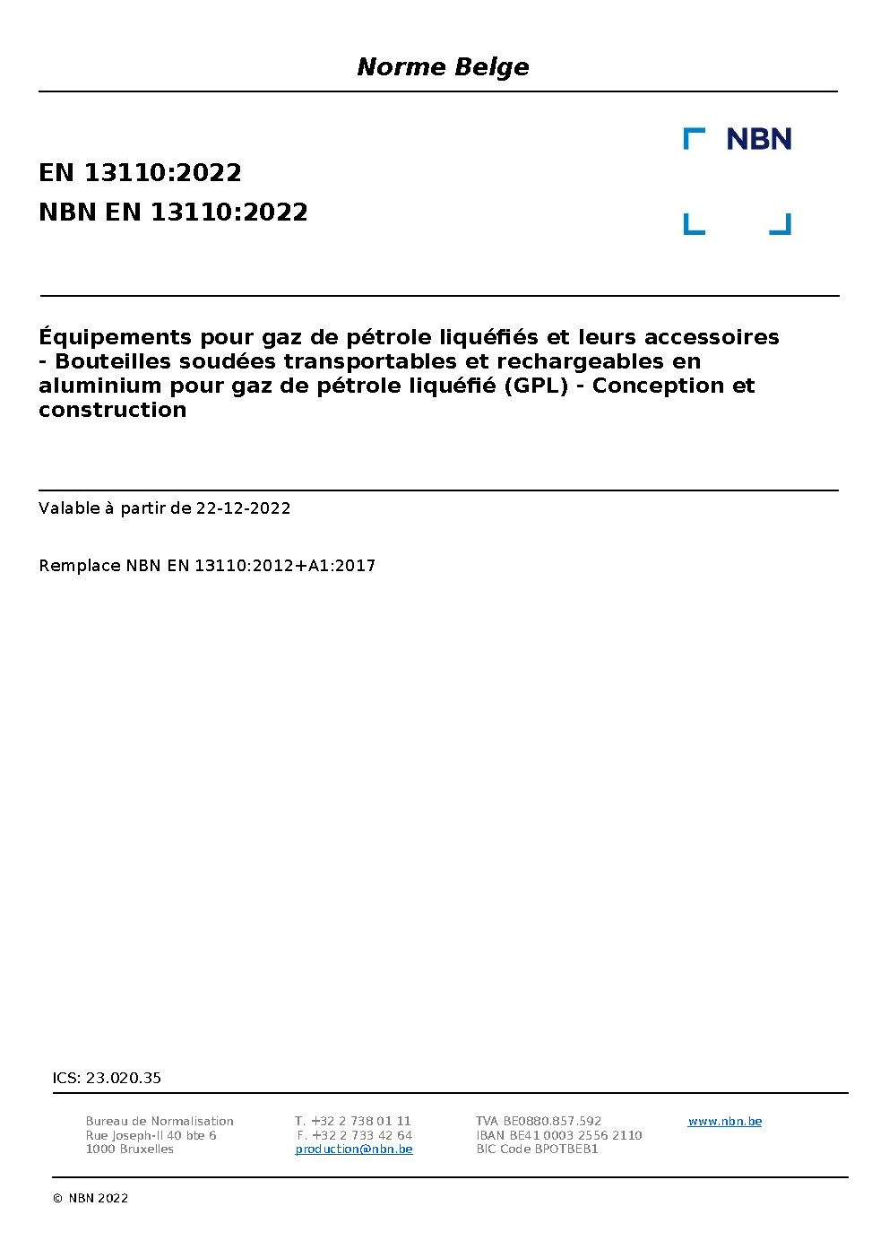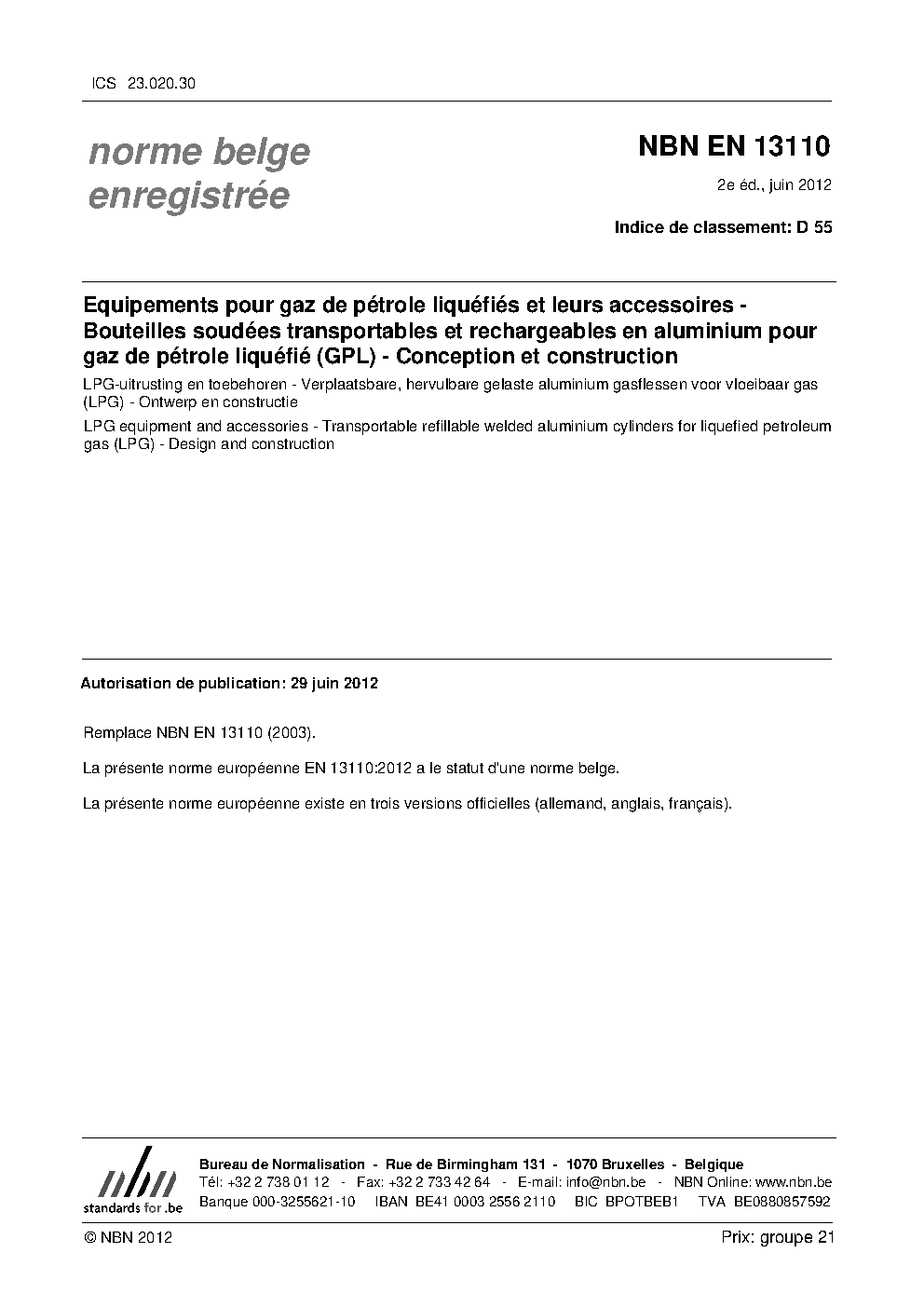| Publisher | Bureau de Normalisation Belge (NBN) |