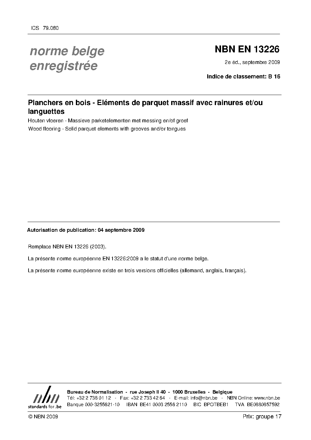 | Publisher | Bureau de Normalisation Belge (NBN) |