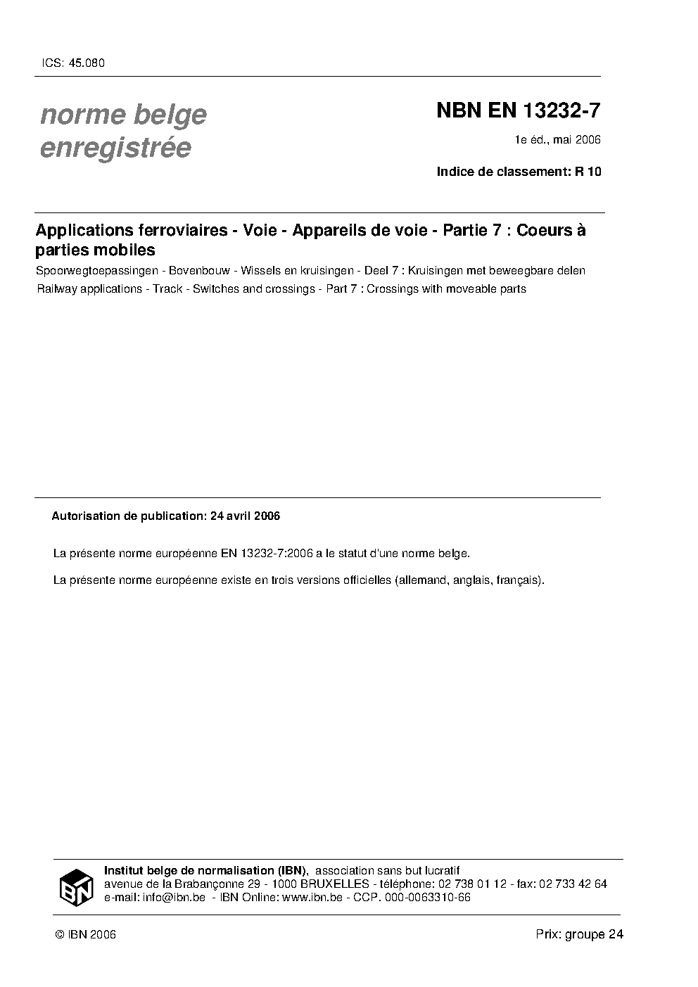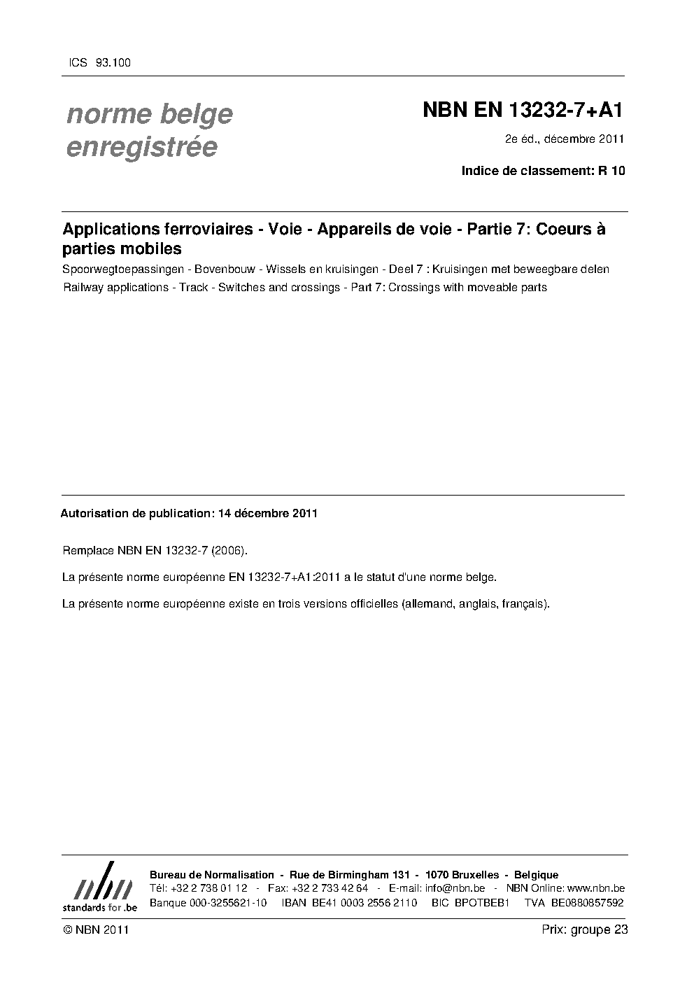 | Publisher | Bureau de Normalisation Belge (NBN) |