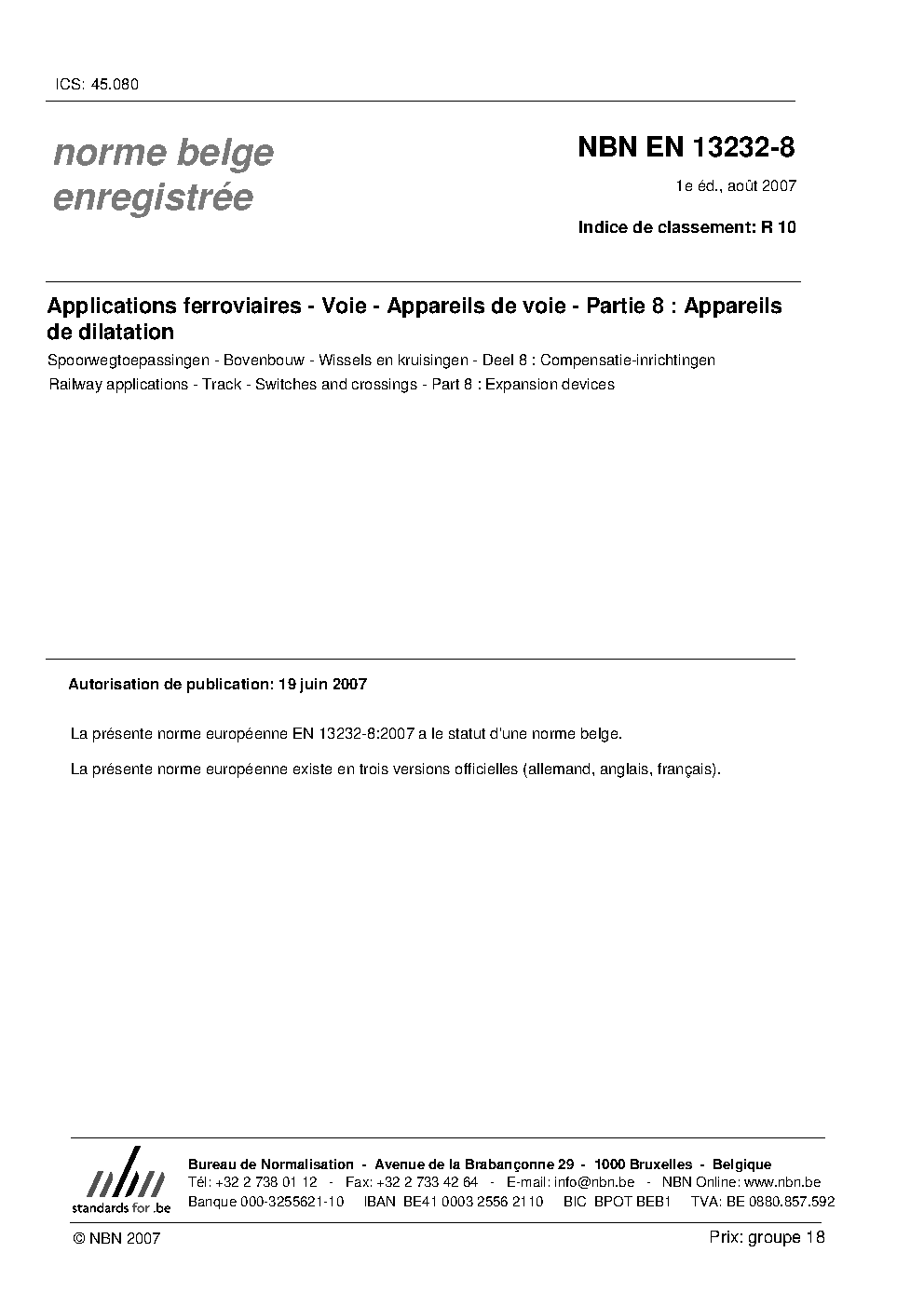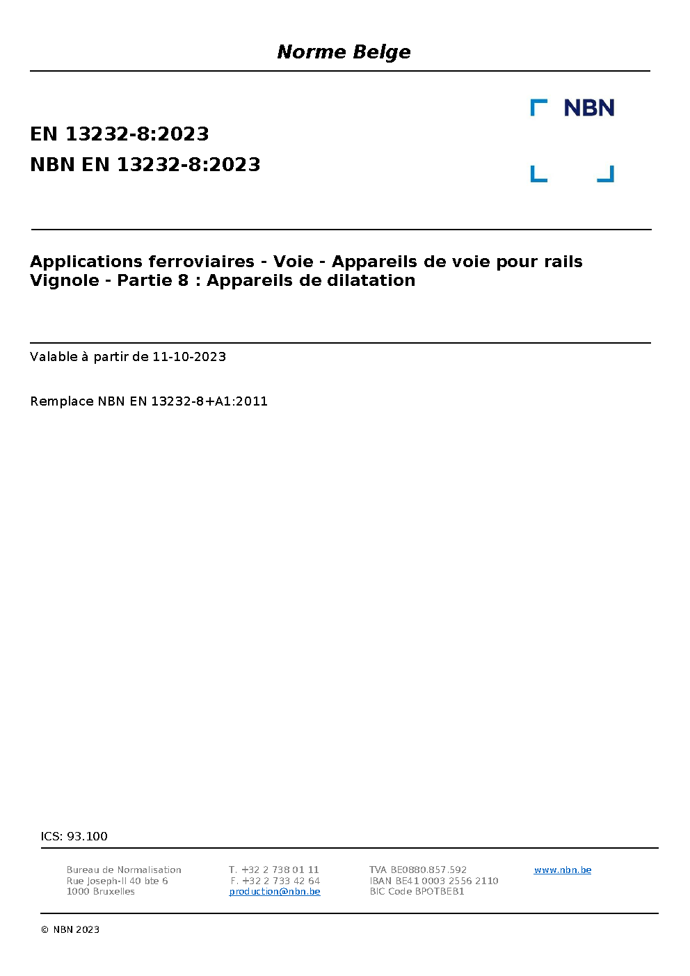 | Publisher | Bureau de Normalisation Belge (NBN) |