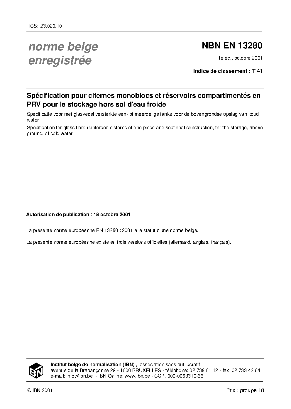 NBN EN 13280:2001