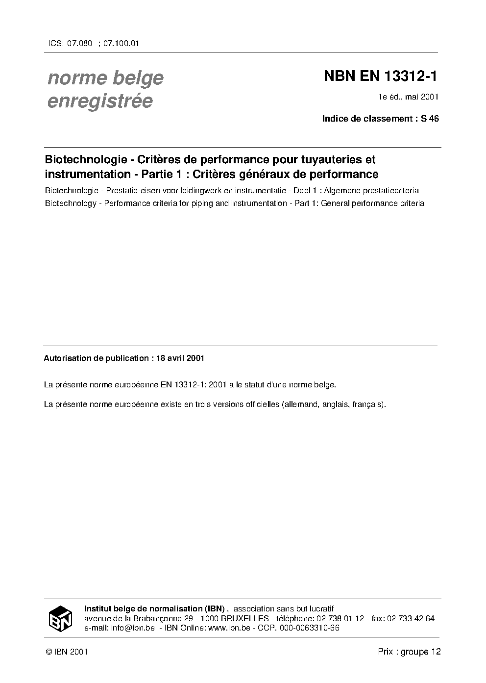 | Publisher | Bureau de Normalisation Belge (NBN) |