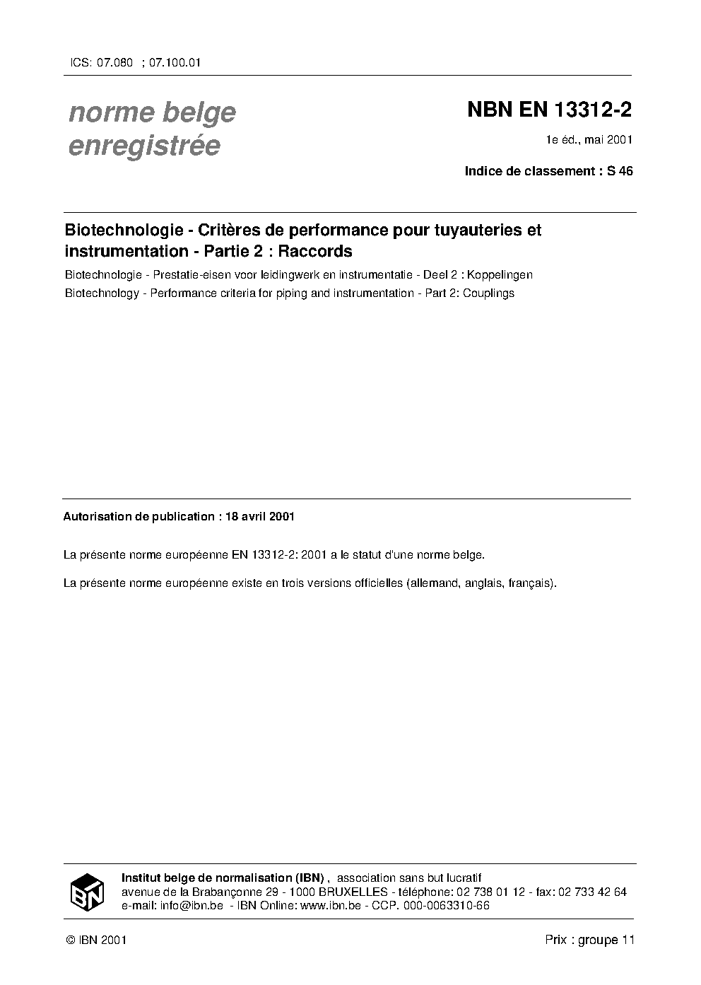 | Publisher | Bureau de Normalisation Belge (NBN) |