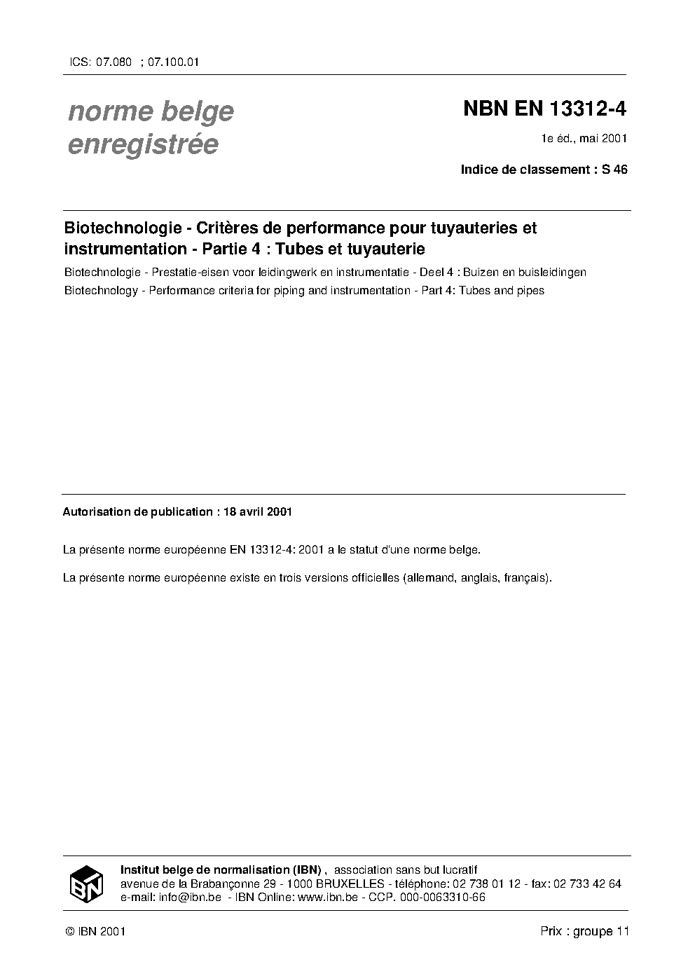 | Publisher | Bureau de Normalisation Belge (NBN) |