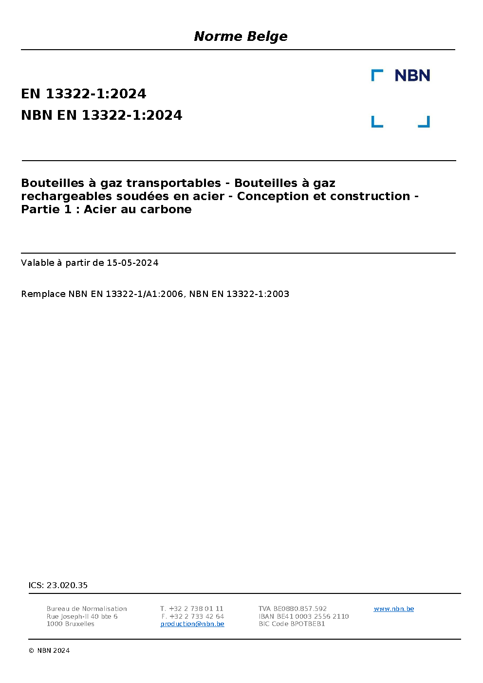 | Publisher | Bureau de Normalisation Belge (NBN) |