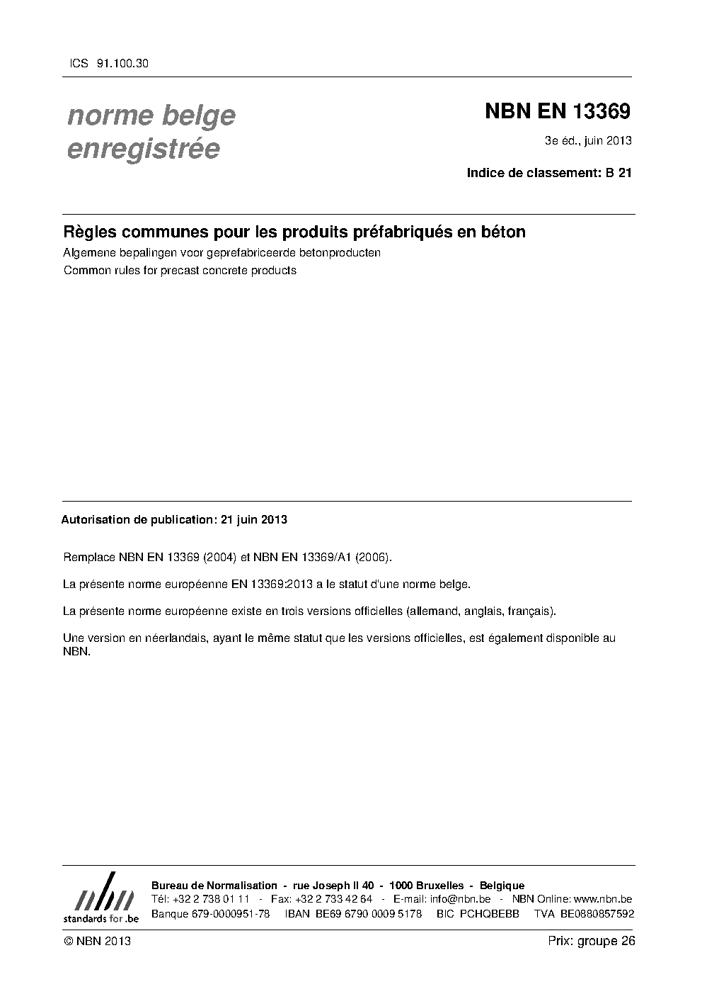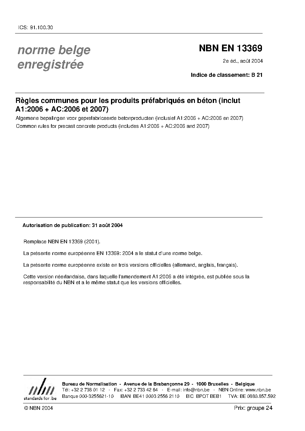 | Publisher | Bureau de Normalisation Belge (NBN) |