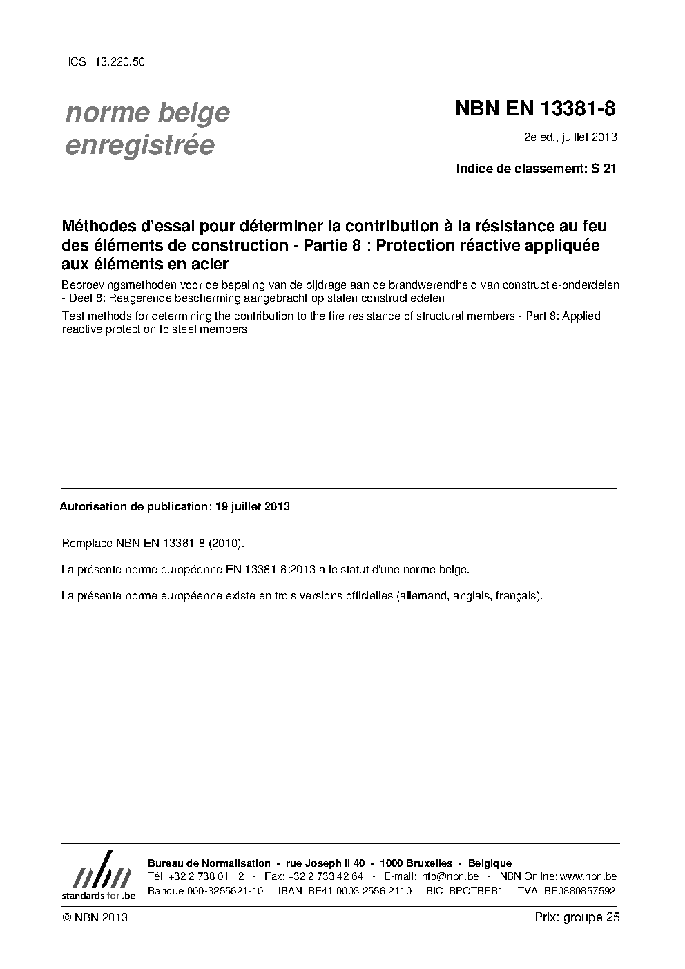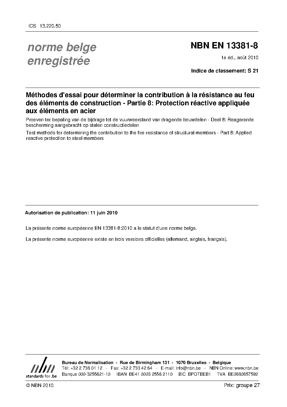 | Publisher | Bureau de Normalisation Belge (NBN) |