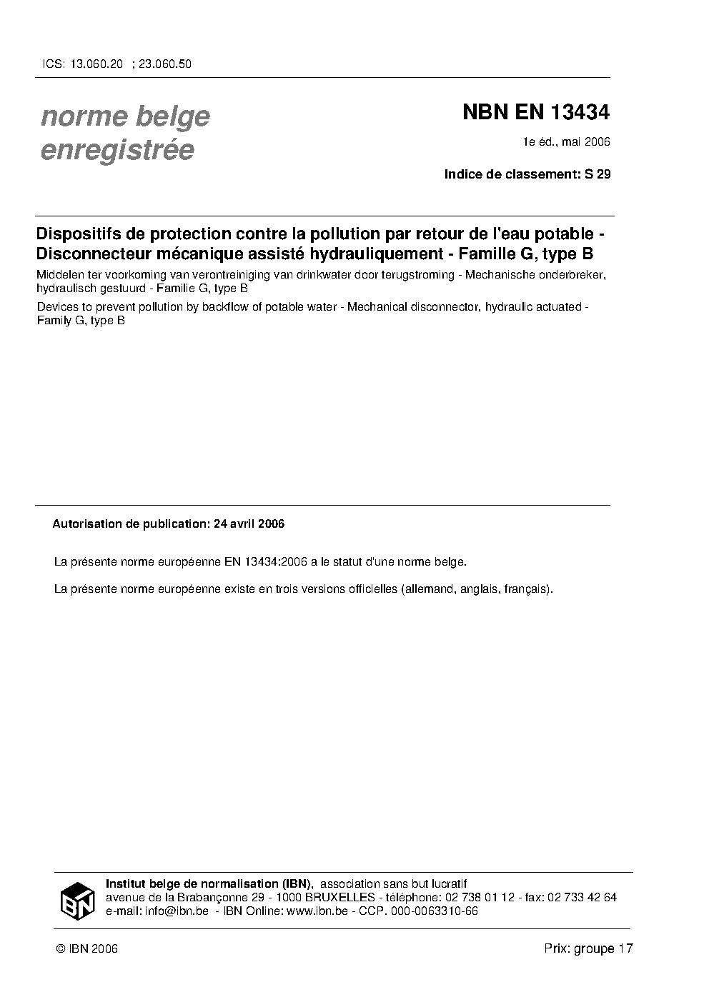 | Publisher | Bureau de Normalisation Belge (NBN) |