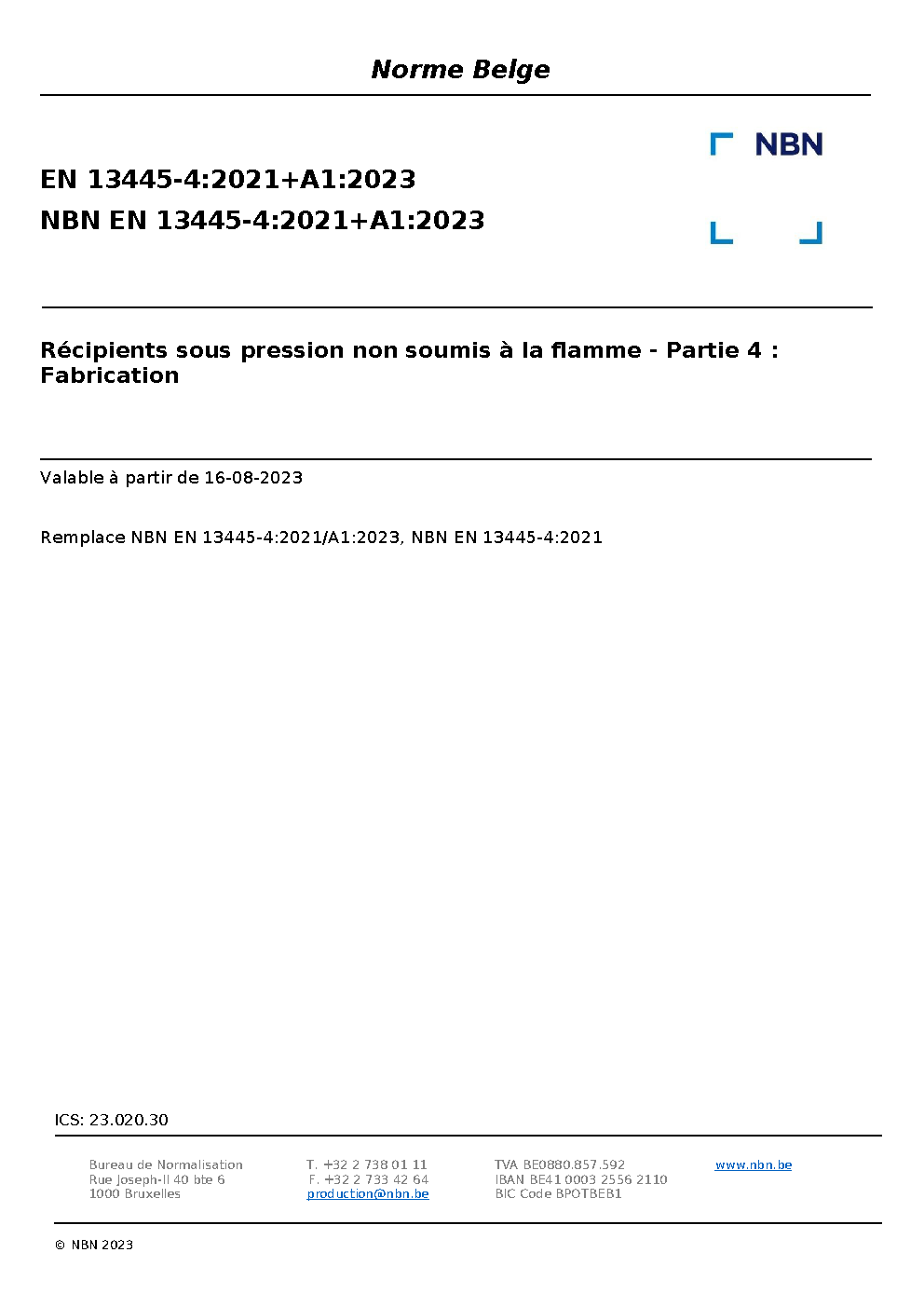 NBN EN 13445-4:2021+A1:2023