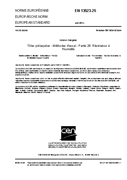 Coil coated metals - Test methods - Part 25: Resistance to humidity
