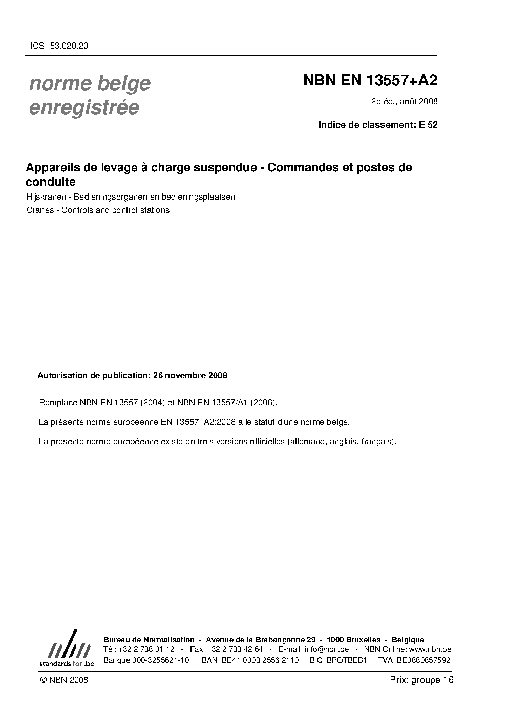 | Publisher | Bureau de Normalisation Belge (NBN) |