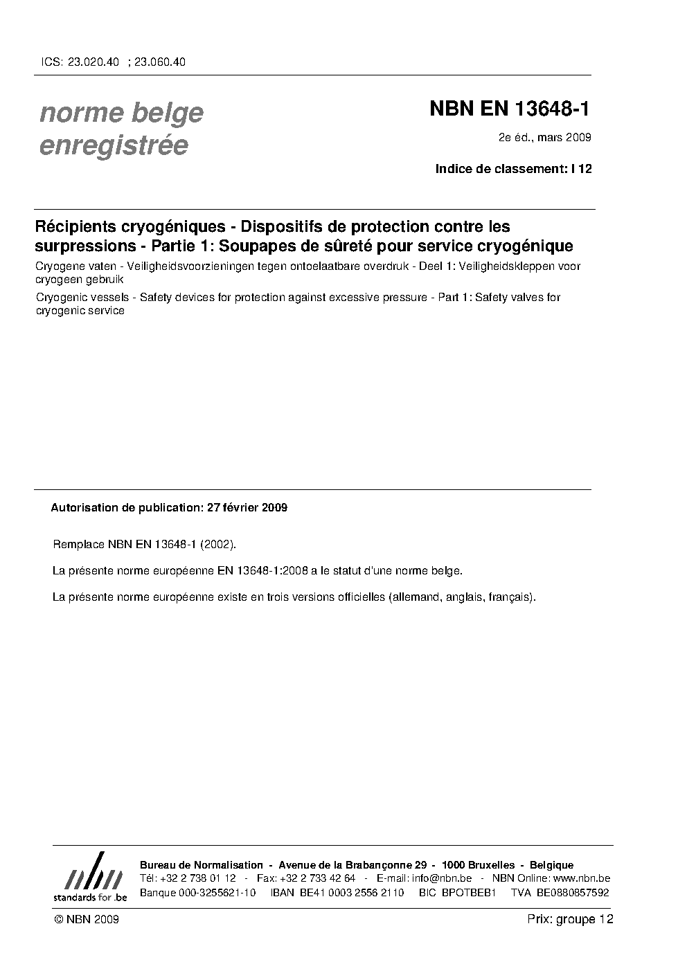 | Publisher | Bureau de Normalisation Belge (NBN) |