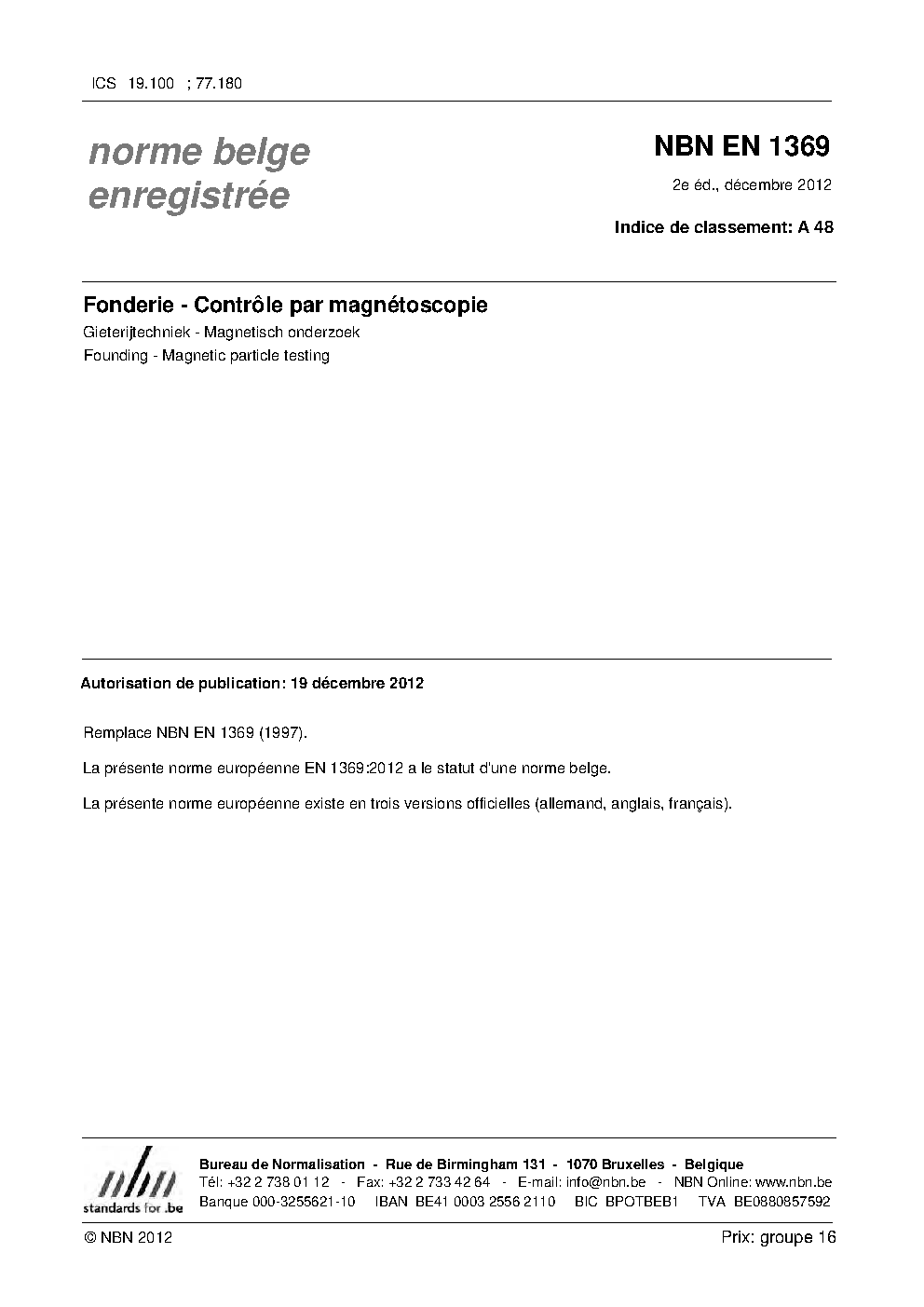 | Publisher | Bureau de Normalisation Belge (NBN) |