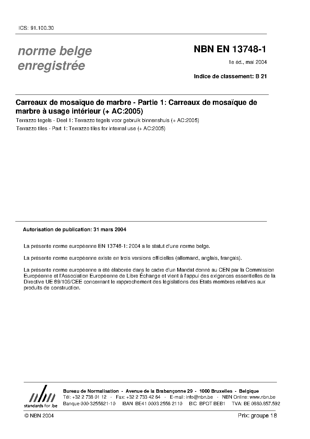 | Publisher | Bureau de Normalisation Belge (NBN) |