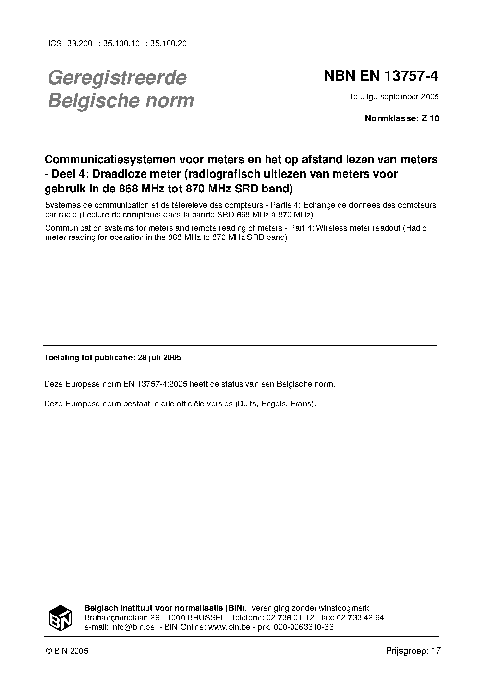 | Publisher | Bureau de Normalisation Belge (NBN) |