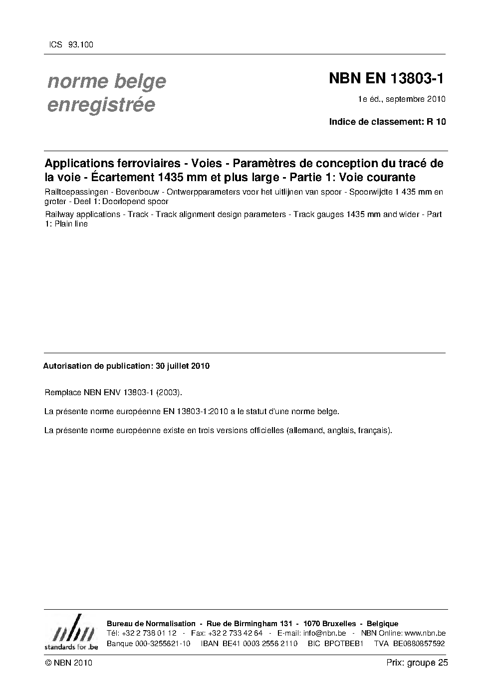 | Publisher | Bureau de Normalisation Belge (NBN) |