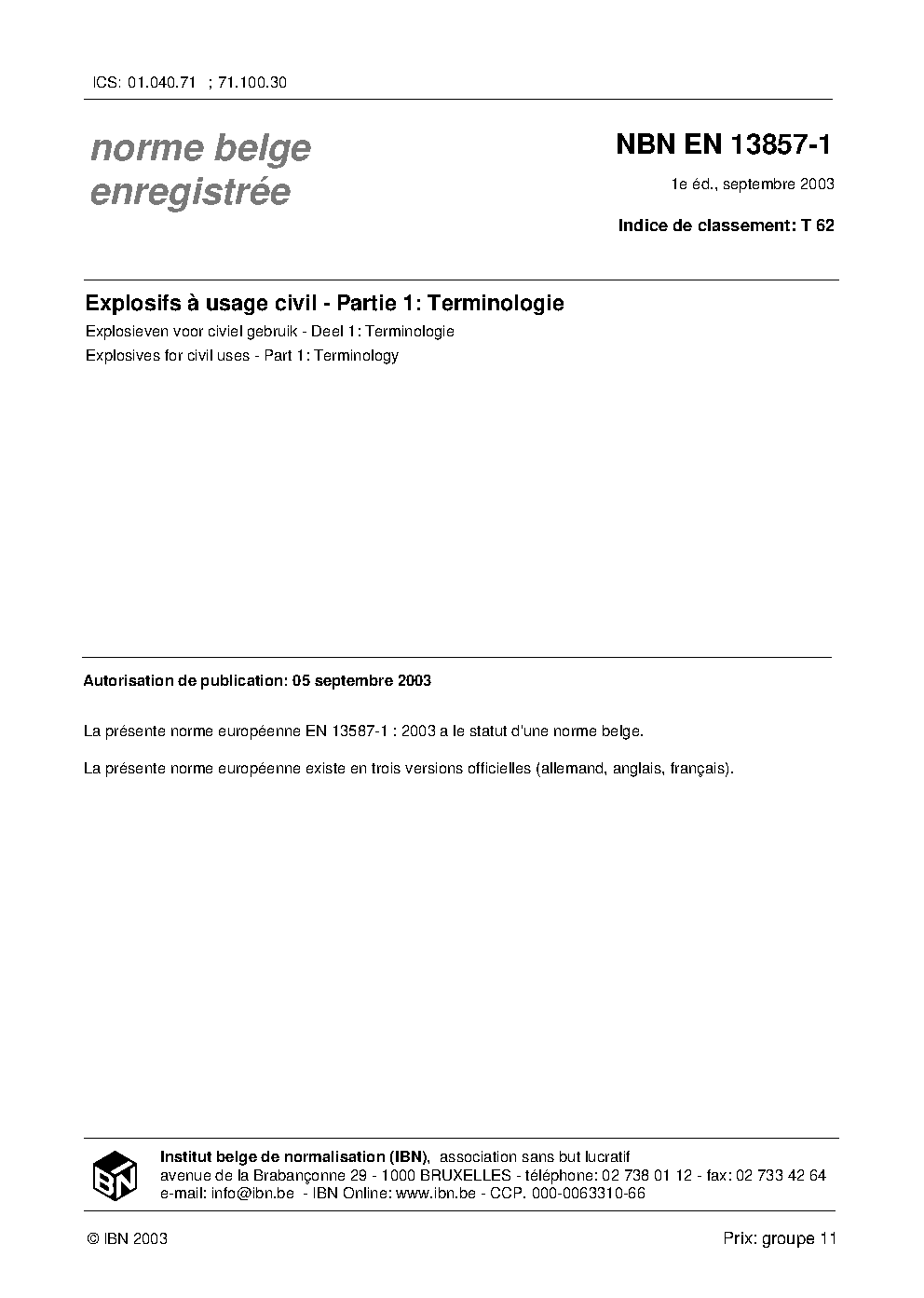 | Publisher | Bureau de Normalisation Belge (NBN) |