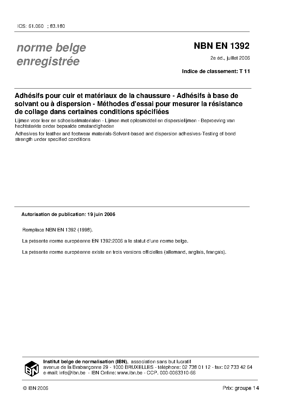 NBN EN 1392:2006