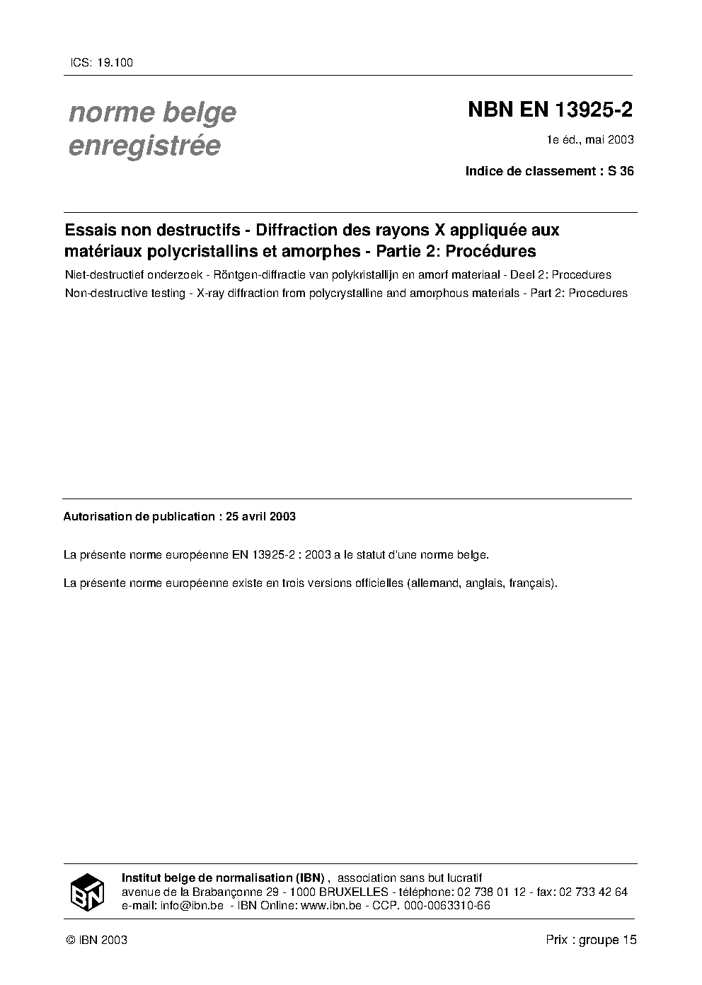 NBN EN 13925-2:2003