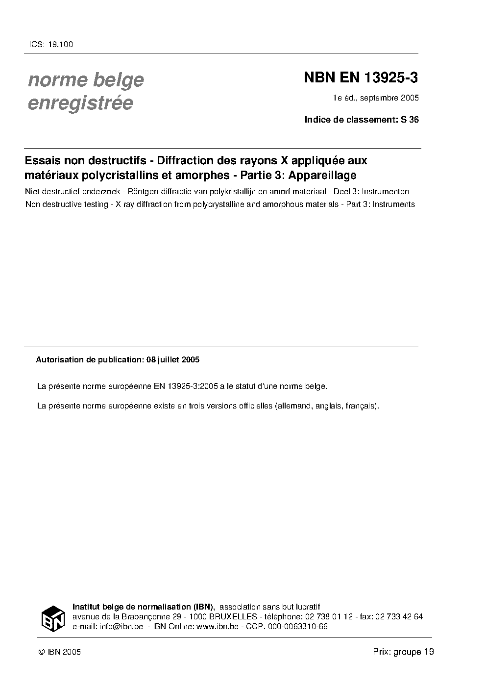 | Publisher | Bureau de Normalisation Belge (NBN) |