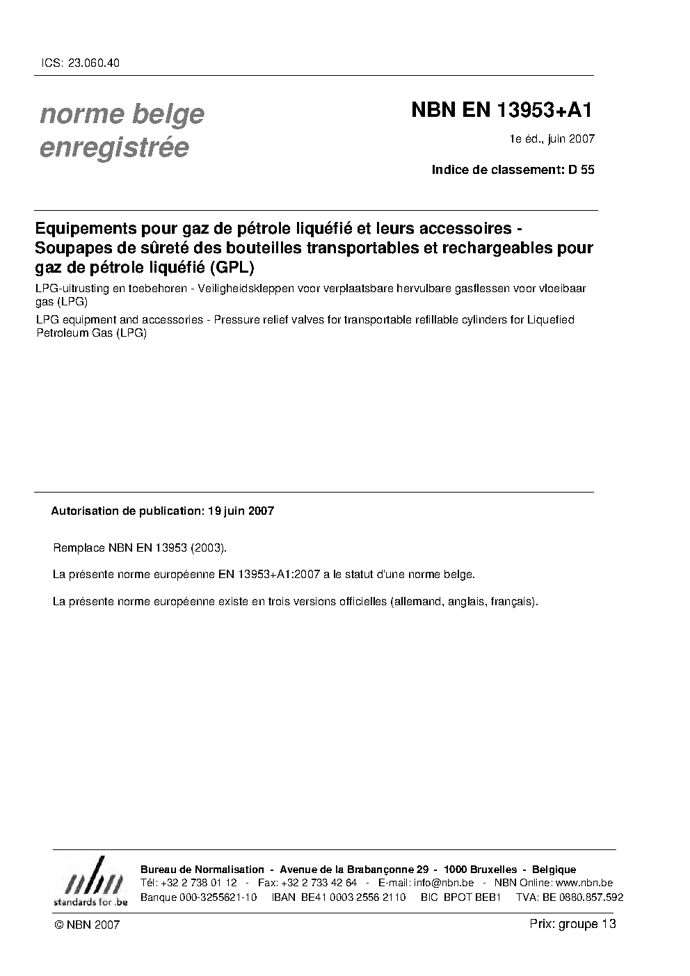 | Publisher | Bureau de Normalisation Belge (NBN) |