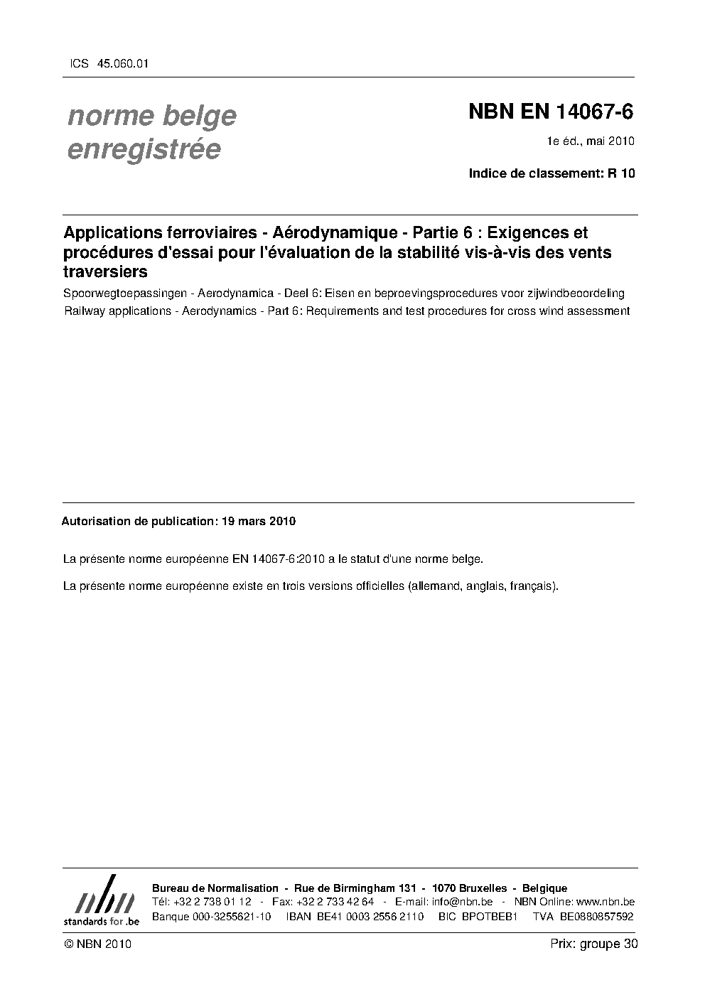 | Publisher | Bureau de Normalisation Belge (NBN) |